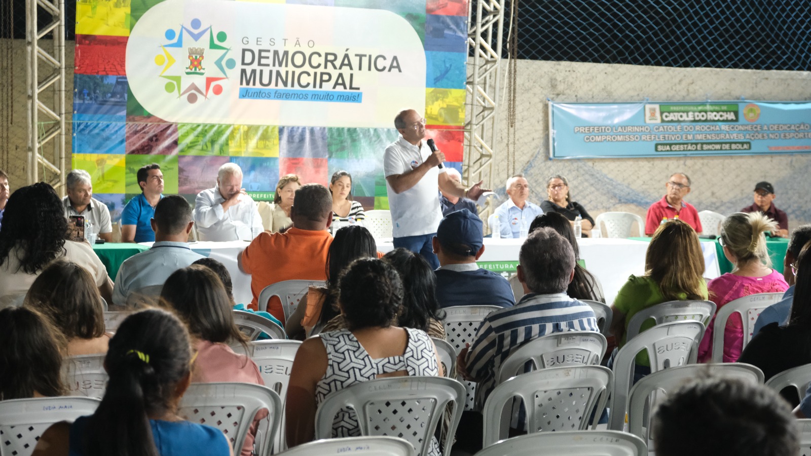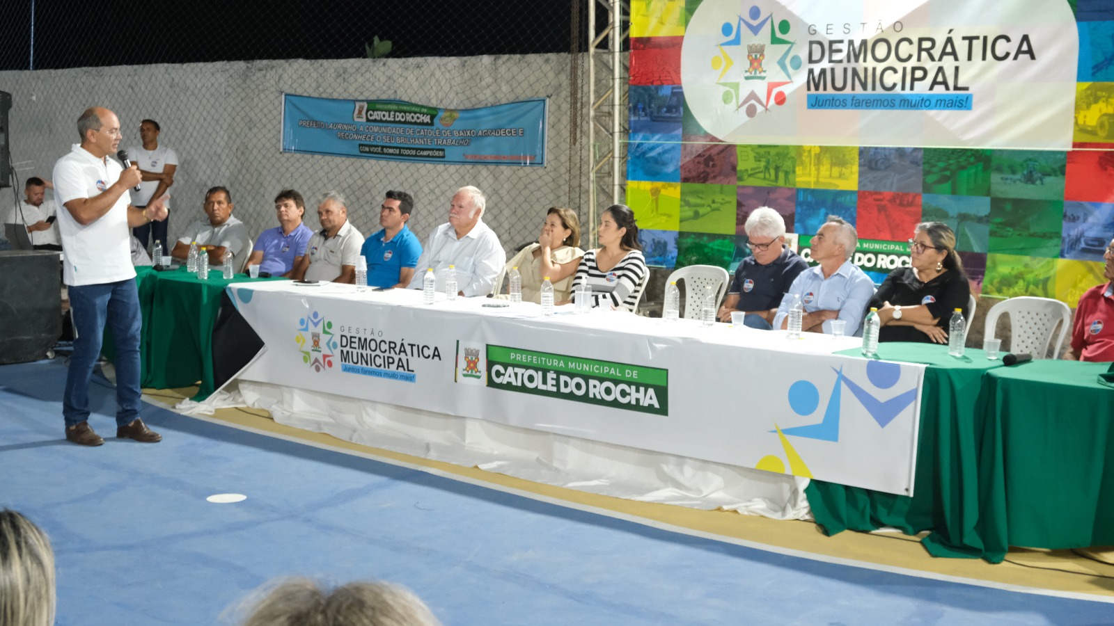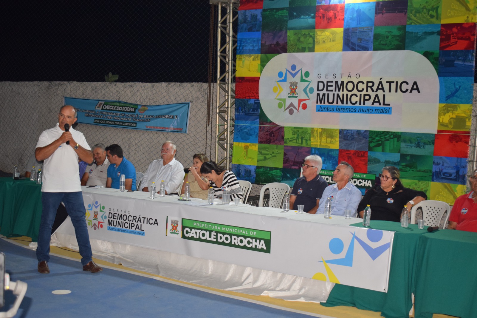 “Hoje, estou aqui agradecendo à Deus pela oportunidade de realizar os compromissos assumidos. Catolé de Baixo ganhou essa Quadra de Esportes, a distribuição de material esportivo para os desportistas, a melhoria das estradas vicinais, a construção dos coletores de alvenaria (lixo) e a ampliação e construção de tanques/bebedouros para os animais. A cessão de uso do Colégio Estadual já está em tramitação no governo do estado. Em Vaca Morta, Mapirunga e São Gonçalo II também foram construídos os coletores de alvenaria (lixo). Já compramos os tubos (manilhas) para fazer a Passagem Molhada no sítio São Gonçalo II. E assim seguimos, buscando parcerias, encaminhando as demandas que não são de nossa competência e cobrando resultados. Que Deus continue nos abençoando, sempre!”, destacou o prefeito catoleense.