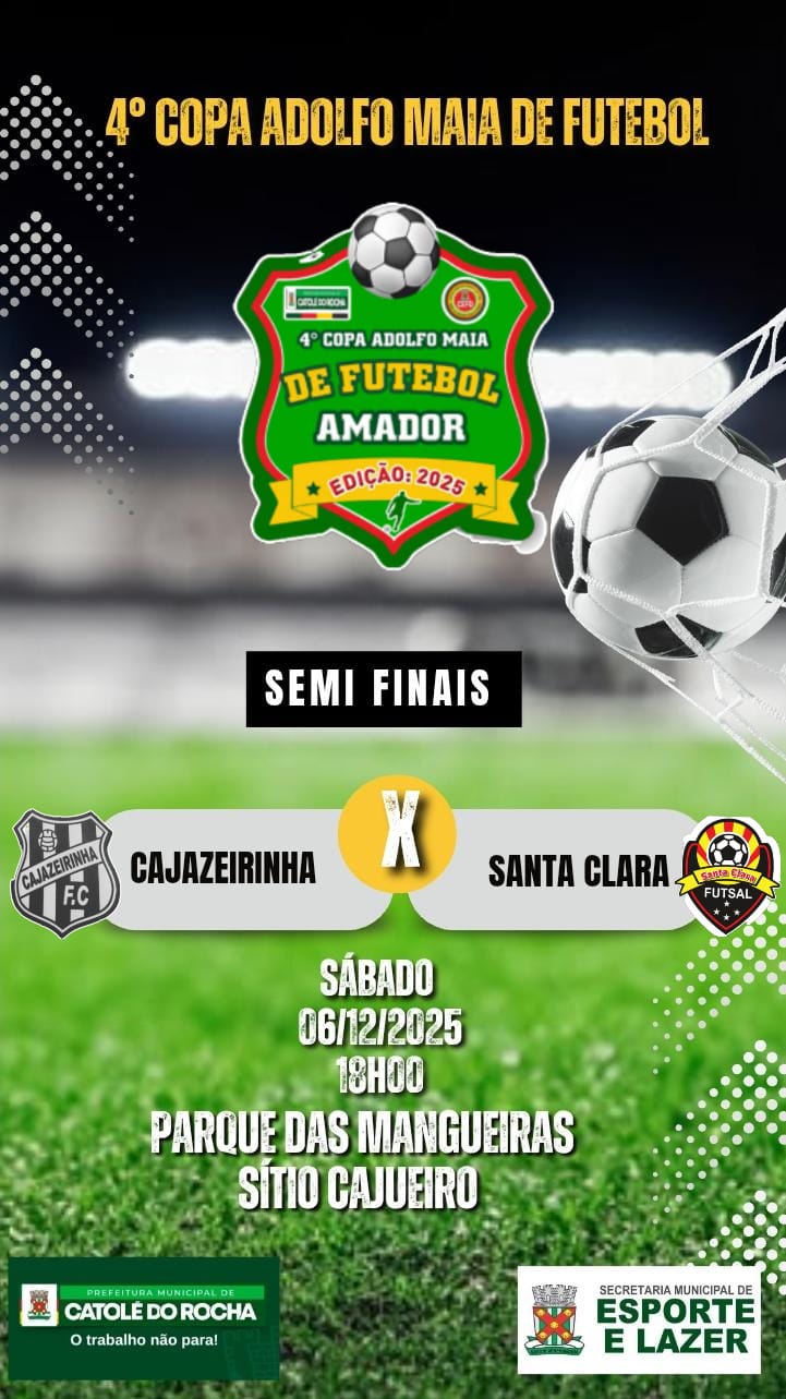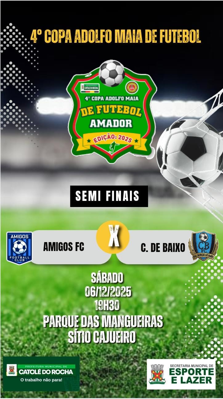 A organização da Copa reforça o convite à torcida para prestigiar o evento e continuar fazendo da 4ª Copa Adolfo Maia um dos maiores torneios de futebol amador da região.