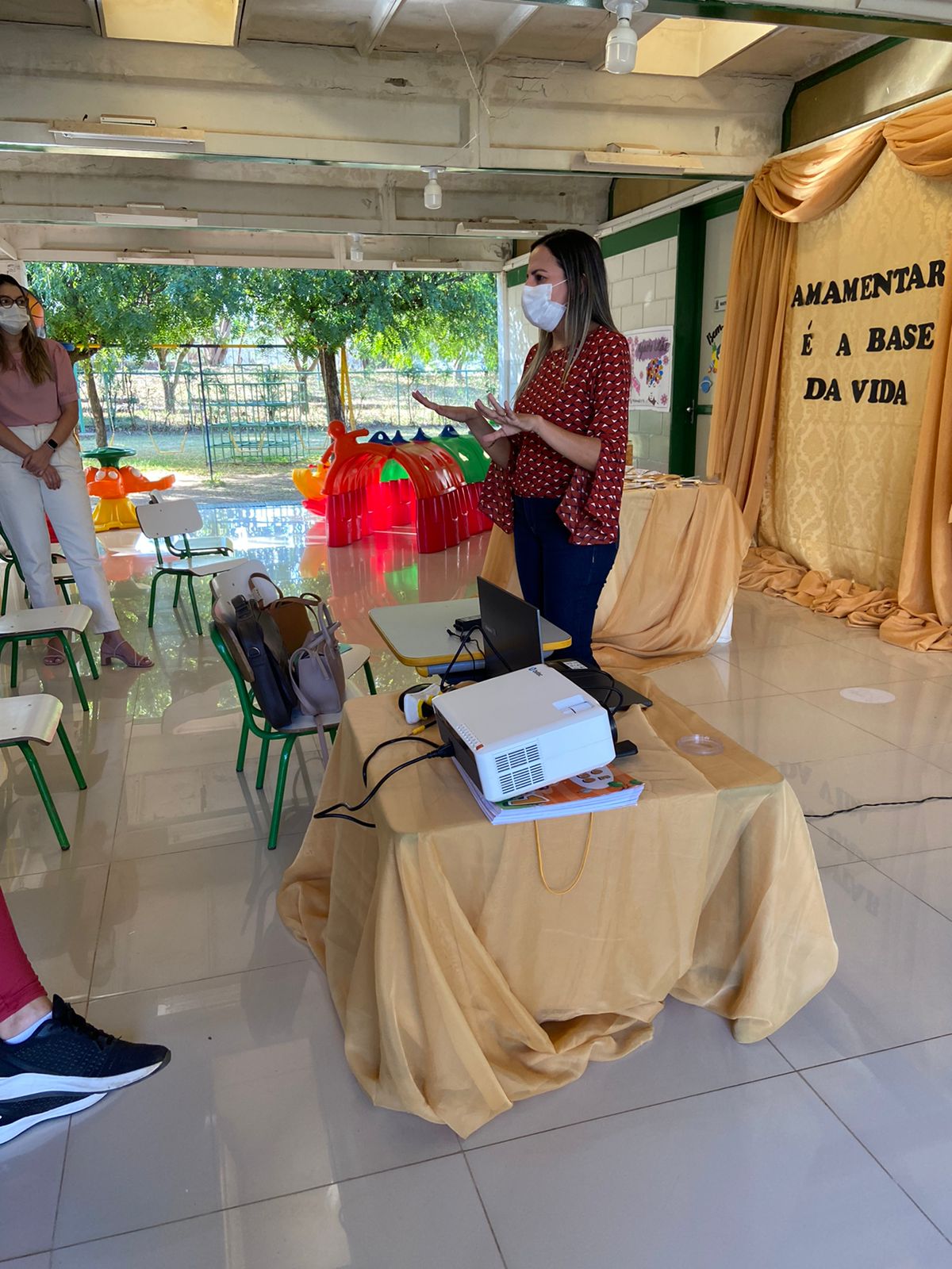 Durante o evento foi debatido os cuidados que devem ocorrer durante a infância, de maneira que as palestrantes Mônica Luiza Dantas, nutricionista e Tamires V. Sousa odontóloga, explanaram acerca da alimentação, dos cuidados com produtos industrializados, amamentação, formação da face e o uso da chupeta. Todos estes assuntos, extremamente pertinentes para o público alvo, que foram as mães dos alunos das turmas do Berçário.