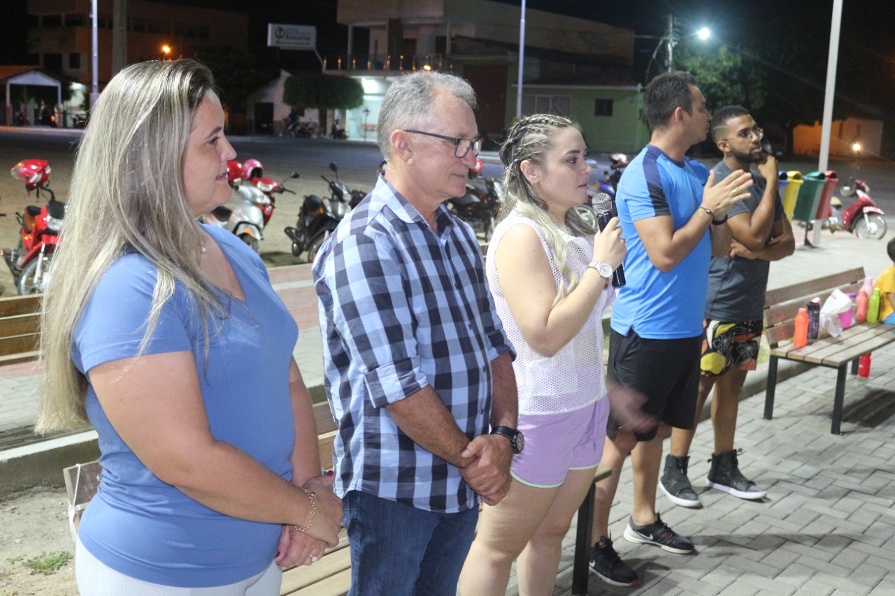 Ao lado da primeira dama do município de Riacho dos Cavalos, Patrícia Farias e da secretária de Saúde, Priscila, o deputado estadual Galego Souza (Progressistas) prestigiou, na noite dessa terça-feira (12), a aula inaugural do projeto geração saúde, realizado em praça pública, no município, que visa incentivar a prática do esporte como um aliado ao bem estar da população.