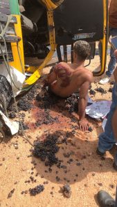 Segundo a Polícia Rodoviária Federal (PRF), o motorista sofreu fratura exposta em um dos braços, mas recebeu atendimento médico ainda no local, por uma equipe do SAMU. O nome dele não foi informado.
