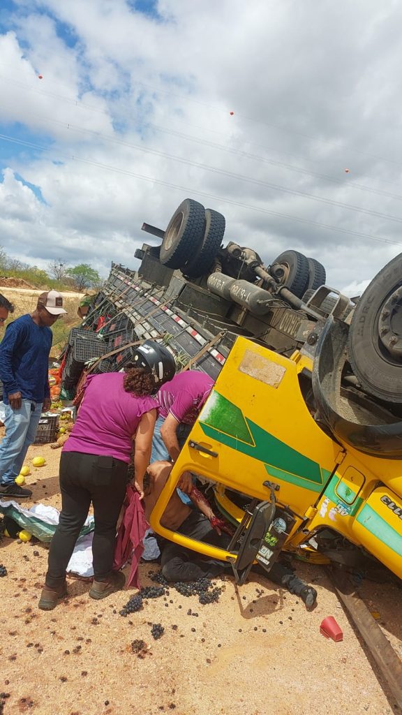 Um caminhão que transportave uva e maracujá tombou em uma curva na BR-230, próximo ao município de Santa Luzia, região metopolitana de Patos, nesta quarta-feira, dia 17 de julho. O acidente acotneceu no começo da tarde, quando o motorista perdeu o controle do veículo, que saiu da estrada e tombou no acostamento.