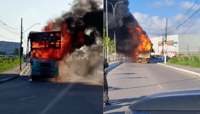 Um caminhão pegou fogo na tarde desta quinta-feira (12), na entrada do bairro de Tibiri, em Santa Rita. O incêndio ocorreu na Avenida Manoel Lisboa, em um ponto que dá acesso à BR-230, embaixo do viaduto.