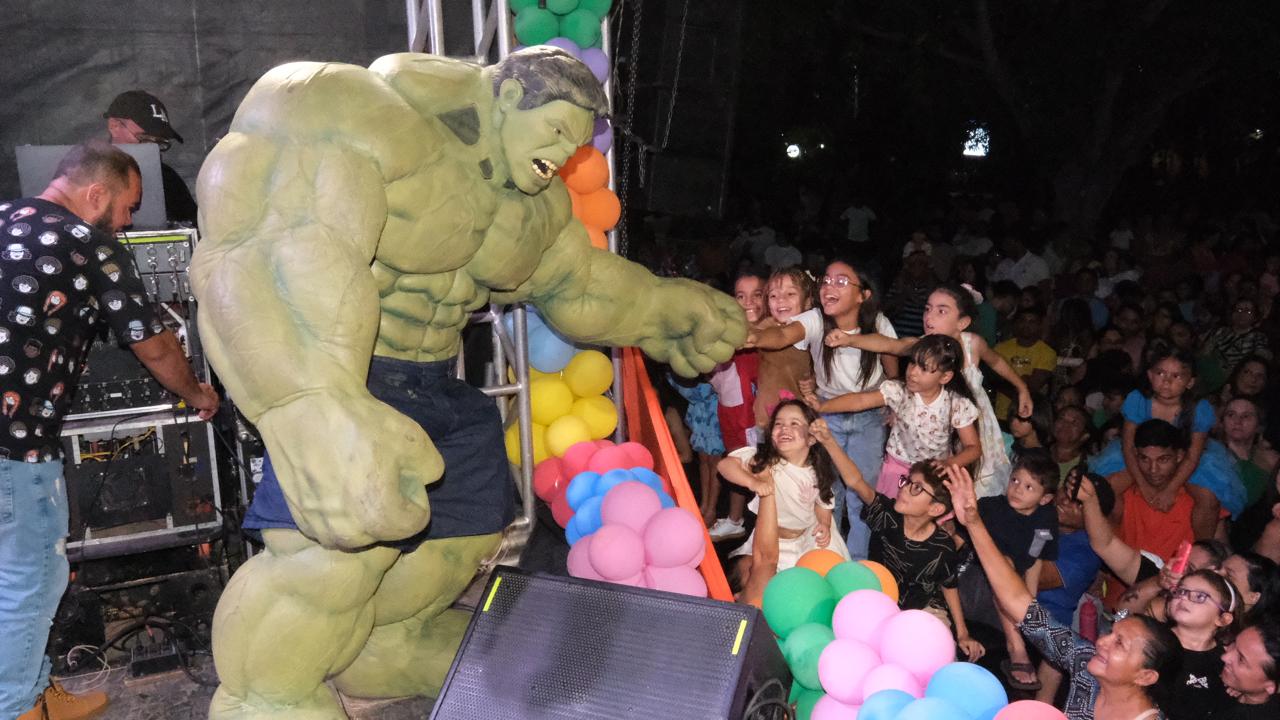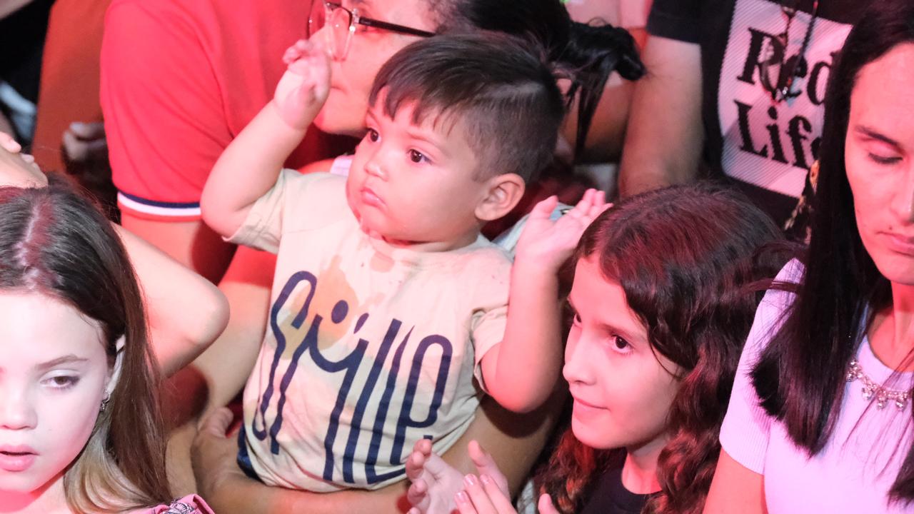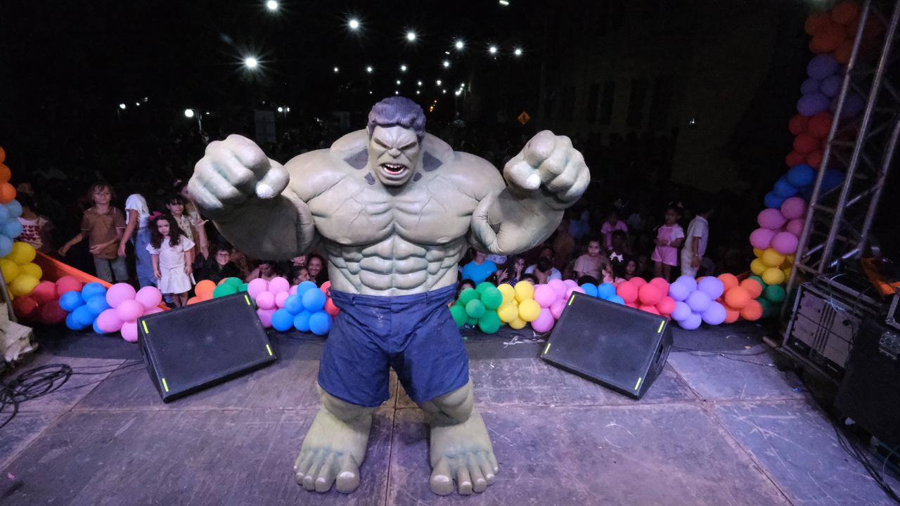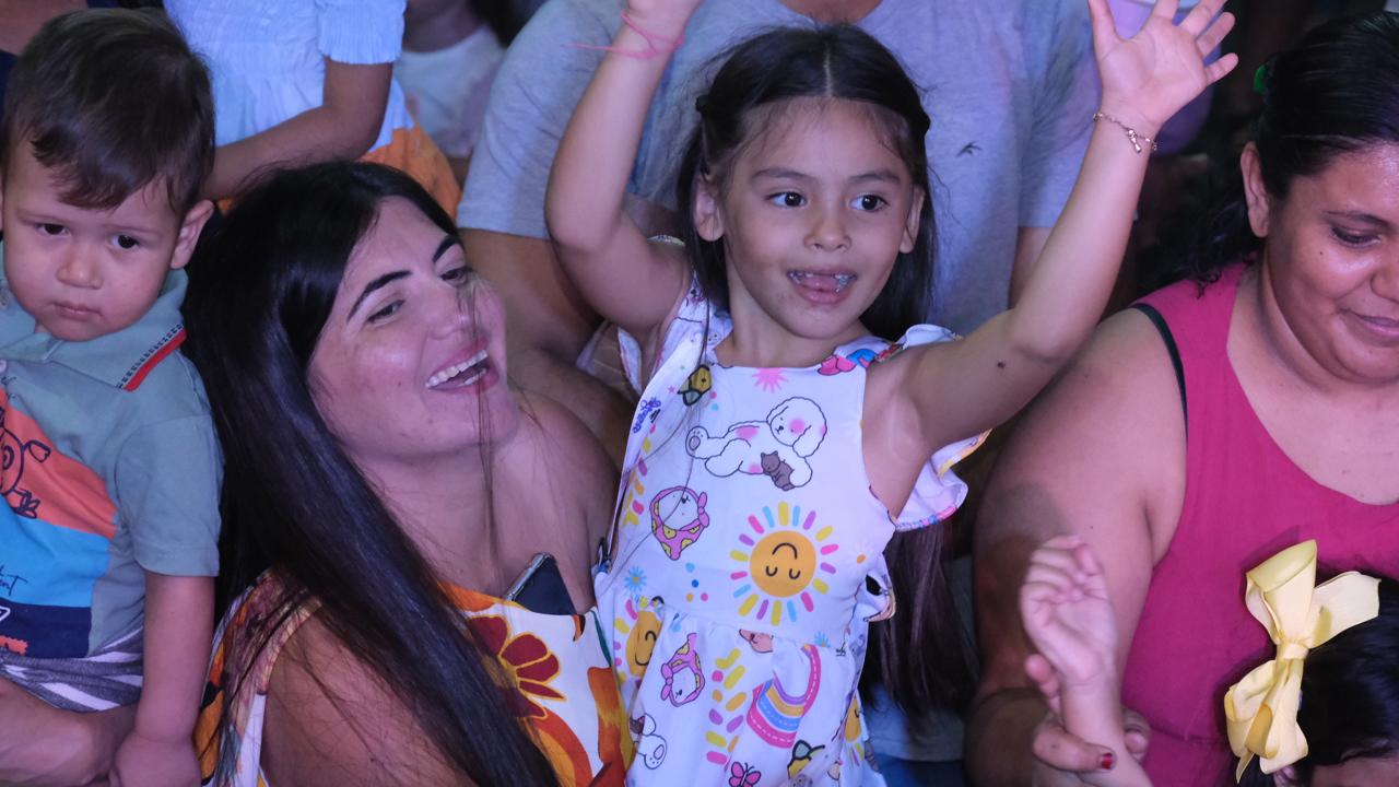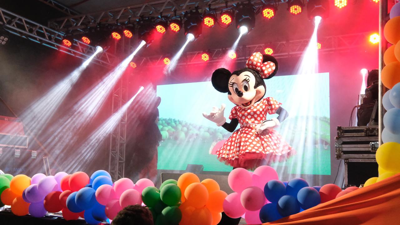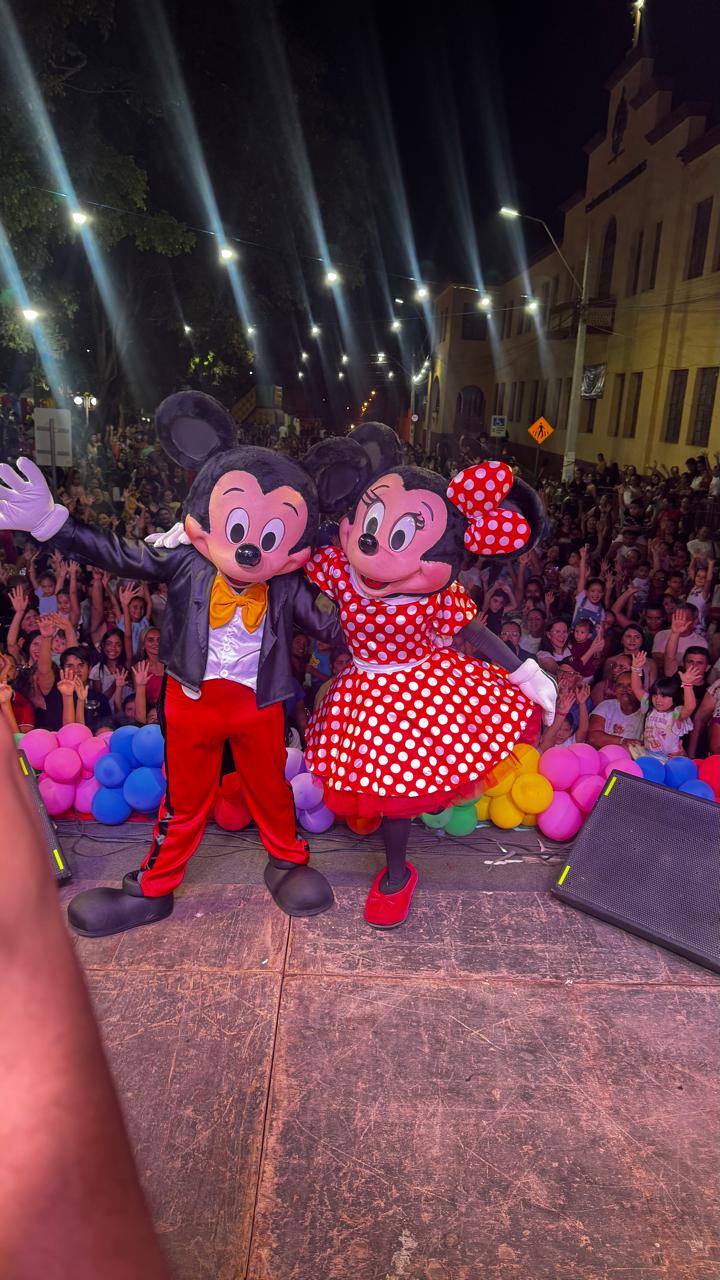O ponto alto da festa foi o show especial com a Turminha da Cia. Festa Encantada, que levou ao palco personagens queridos da Disney e da Marvel, encantando o público com muita música, dança e interação.