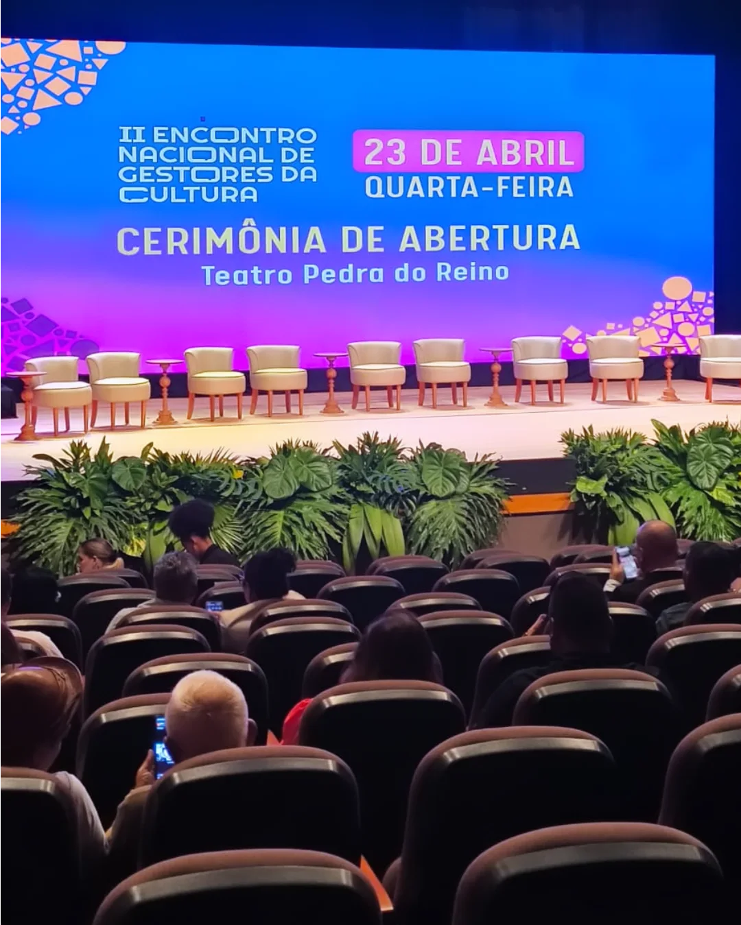A cerimônia de abertura, realizada no Teatro Pedra do Reino, contou com a presença da ministra da Cultura, Margareth Menezes, do governador da Paraíba, João Azevêdo, do secretário estadual de Cultura, Pedro Santos, além de diversas outras autoridades.
