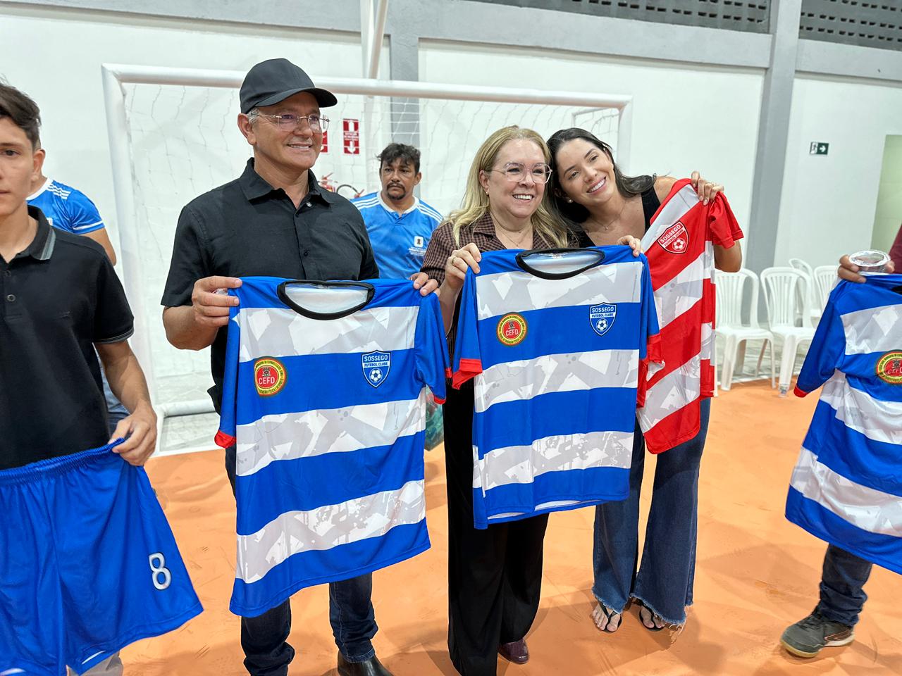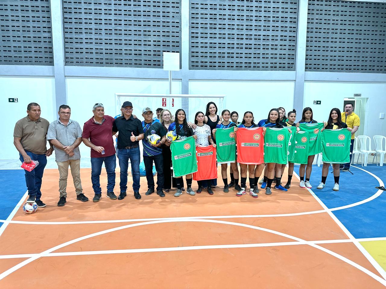 Encerrando a solenidade, o prefeito entregou materiais esportivos às equipes de futsal masculina e feminina da escola, reforçando o incentivo à prática esportiva entre os jovens.