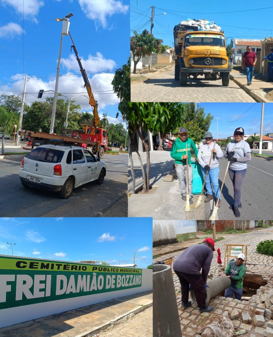 Um dos pontos que recebeu atenção especial foi o Cemitério Frei Damião de Bozano, onde está sendo realizado um mutirão de limpeza e capinagem, assegurando um ambiente mais digno, limpo e preservado para visitantes e familiares.