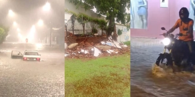 Imagens compartilhadas nas redes sociais mostram veículos submersos, ruas completamente tomadas pela água e estabelecimentos comerciais invadidos pela correnteza. Em alguns trechos, a força da água chegou a arrastar cadeiras de restaurantes e outros objetos.