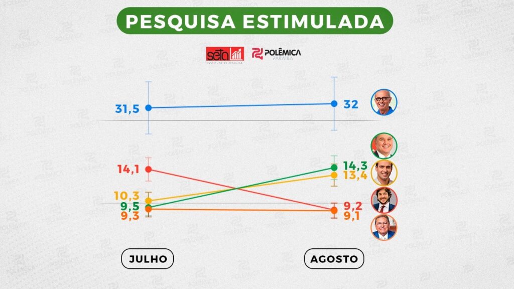 COMPARATIVO JULHO/AGOSTO: Pesquisa Seta aponta que Efraim e Lucas foram os que mais cresceram e Pedro o que mais caiu na disputa pelo governo