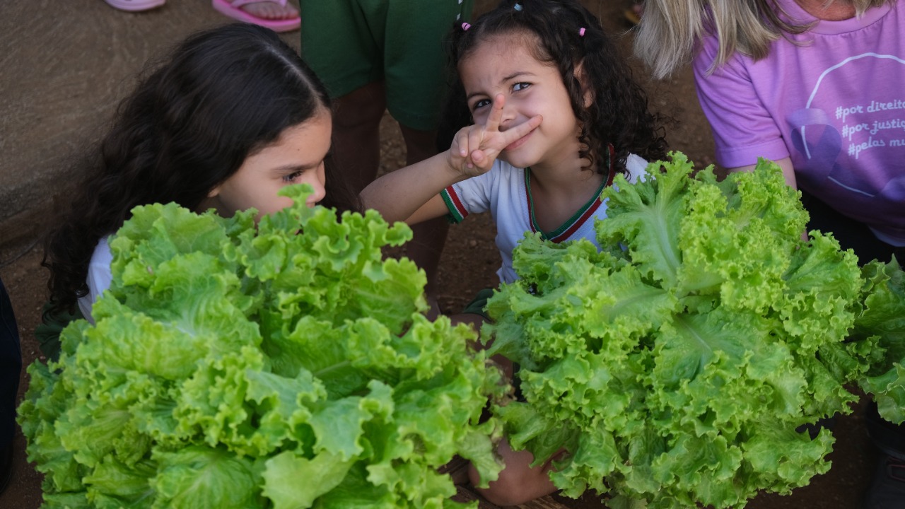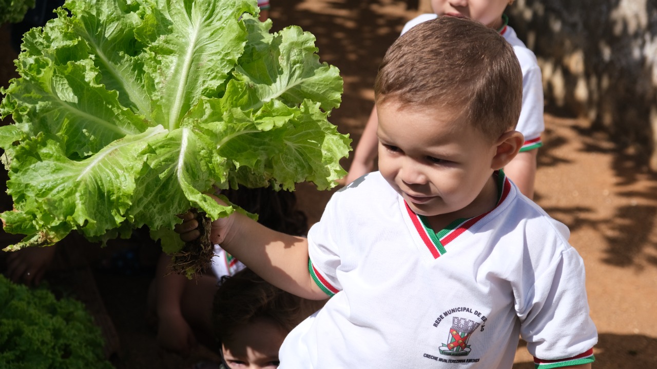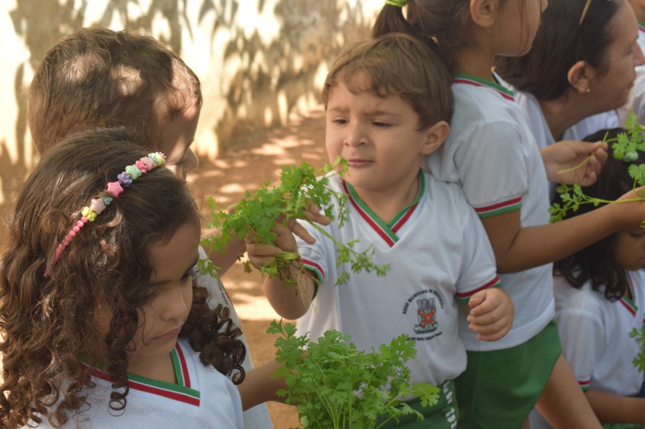 Na terça-feira (18/10), foi realizada na Creche Municipal Terezinha Pereira Nunes a segunda colheita da Horta Estudantil.