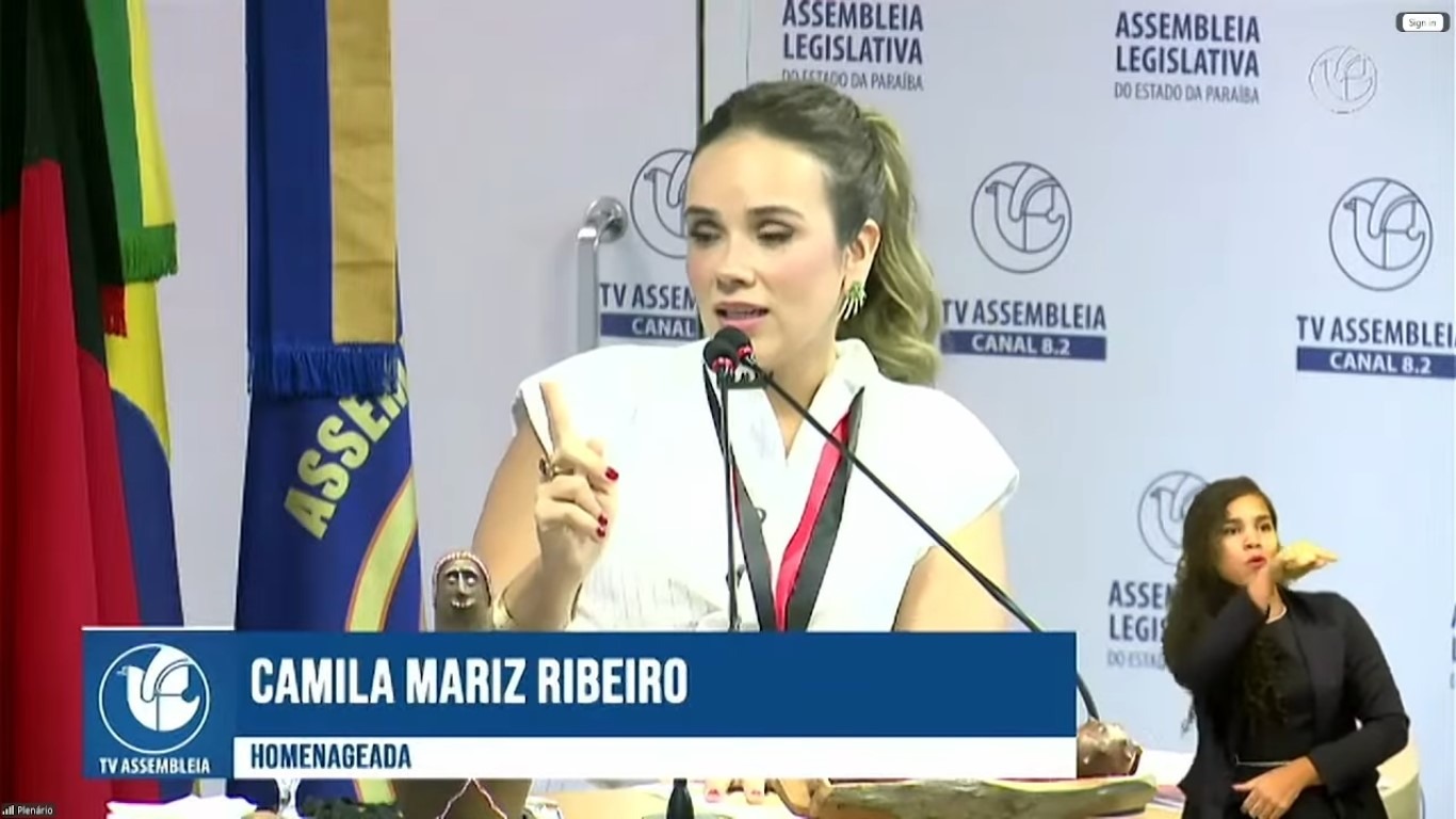 A homenagem, proposta pelo deputado Eduardo Carneiro, reuniu parlamentares, autoridades e representantes de diversas instituições e marcou um momento de reconhecimento público à atuação de Camila Mariz em defesa dos direitos das mulheres na Paraíba.