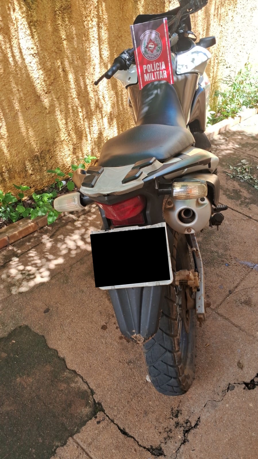 Militares da Força Tática do 12º Batalhão faziam blitz de rotina na PB-325 quando abordaram uma motocicleta Honda Bros azul ostentando placa fora do padrão original. Após uma averiguação os policiais constataram que a numeração do chassi e do motor também estavam fora do padrão de fábrica, apresentando indícios de adulteração veicular.