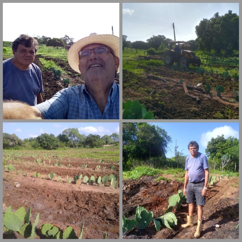 A Gerência Regional da EMPAER de Catolé do Rocha-PB esteve visitando na manhã de segunda – feira (08), a propriedade do advogado Dr. Hildebrando Diniz no Sítio Pau-de-Leite, para entregar a semente de algodão colorido para o plantio e encontrei o mesmo cortando mais uma pequena área onde está plantada uma palma e devido ter feito o plantio com o espaçamento muito largo da Palma ele vai ver se aproveita e faz o consórcio com algodão como experiência. Está previsto para serem plantados 3,0 hectares em Catolé e 2,0 hectares em outra propriedade no Município de Brejo dos Santos-PB.