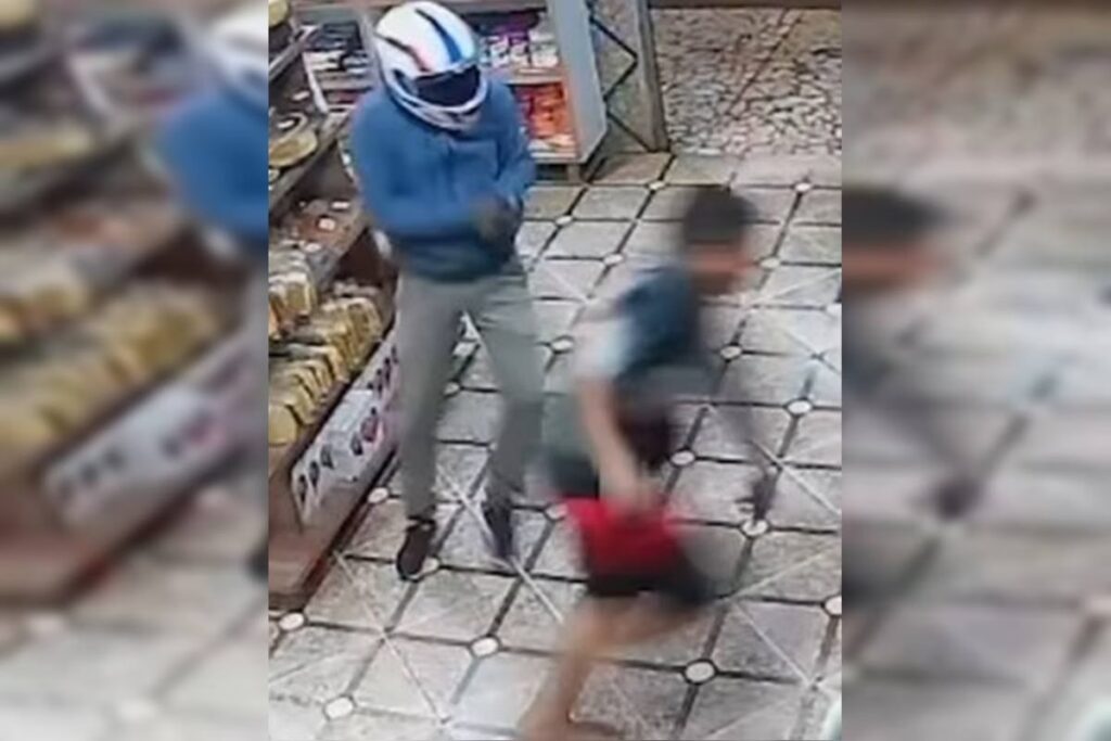 Homem é executado a tiros por assassino de capacete em padaria. VEJA O VÍDEO!