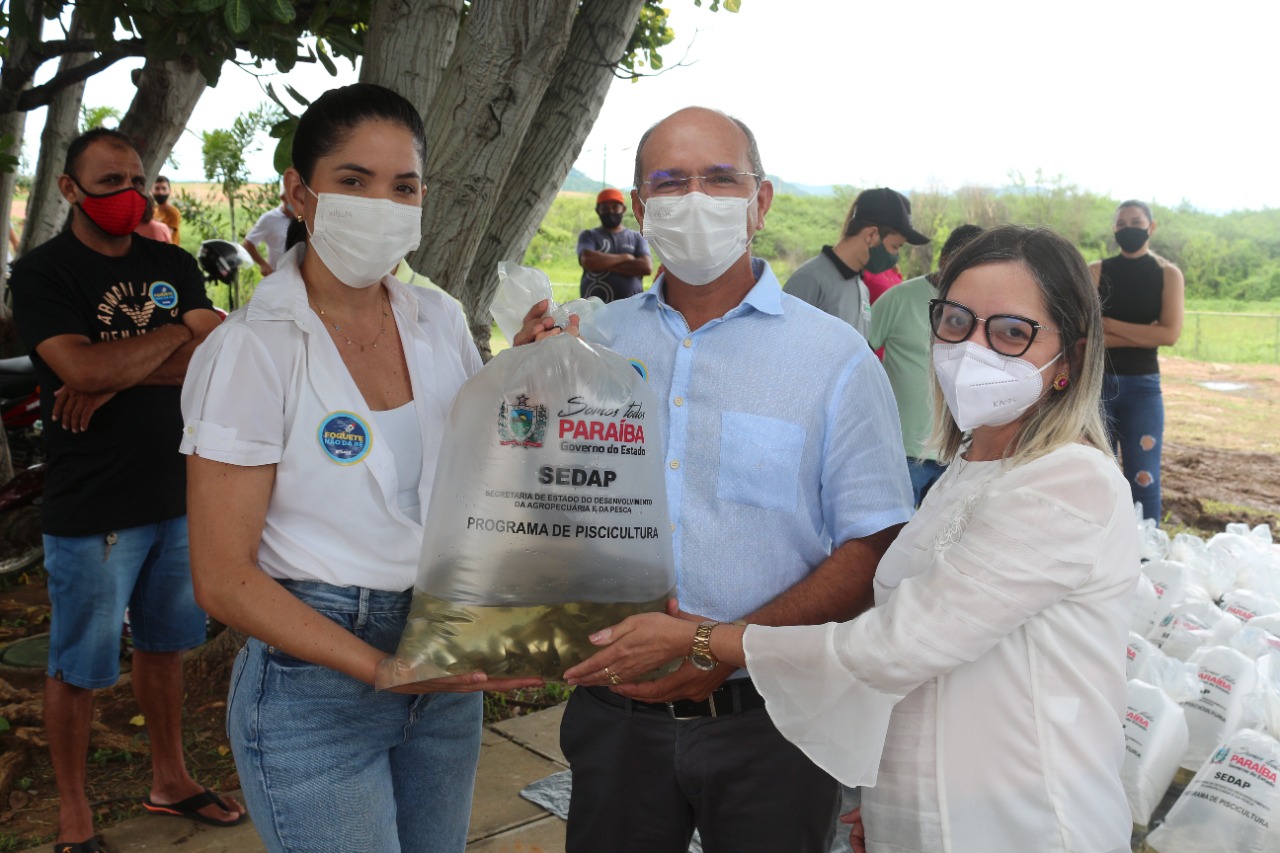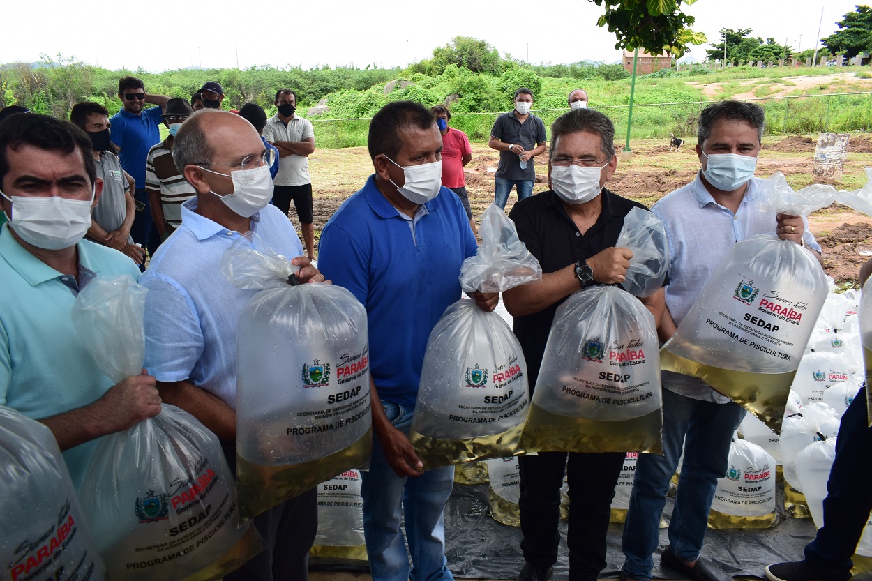 Em ato contínuo, foi realizada a entrega de 30 mil alevinos para o peixamento de açudes de pequeno emédioportes, fruto da parceria com o Governo da Paraíba.