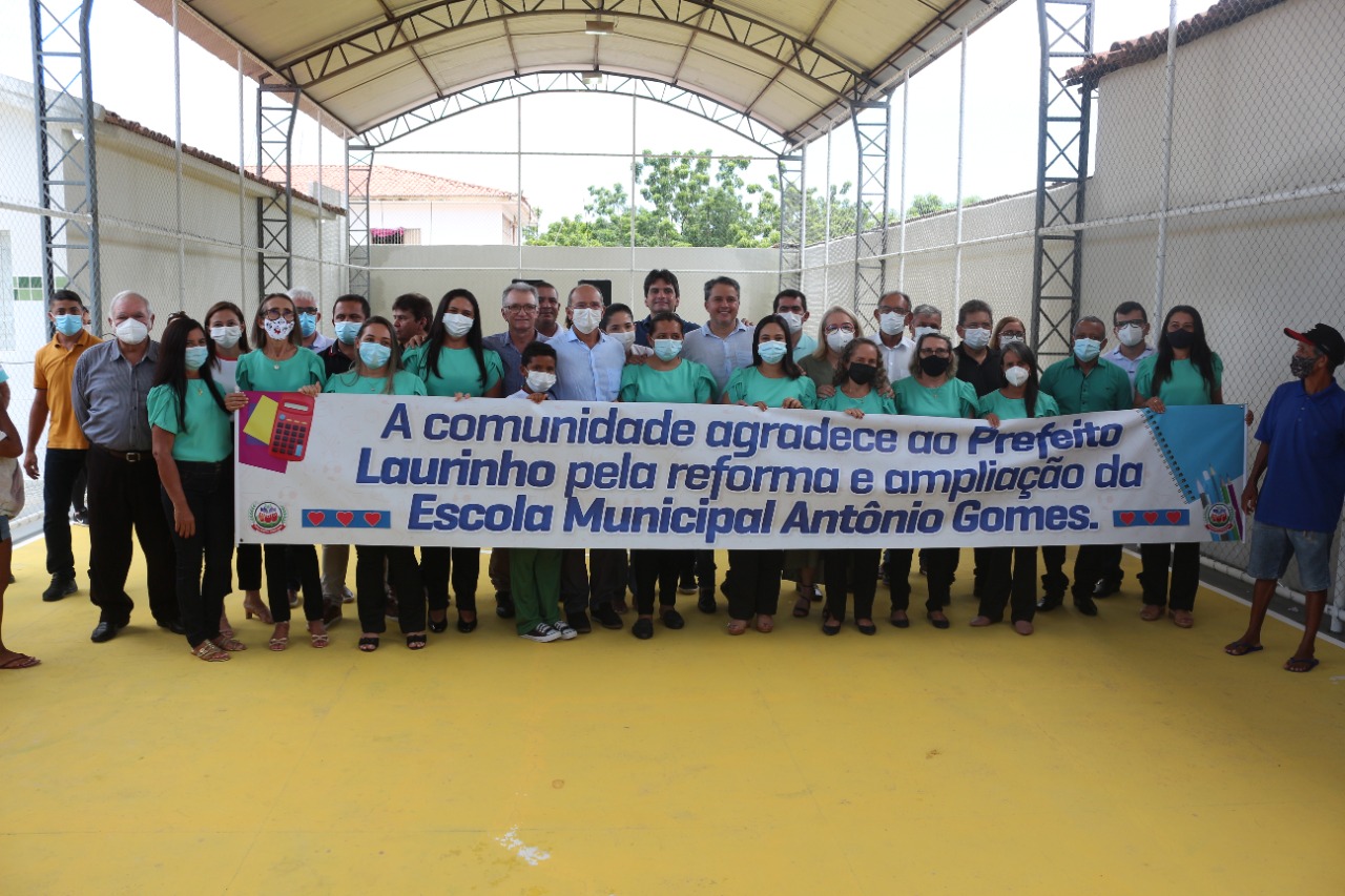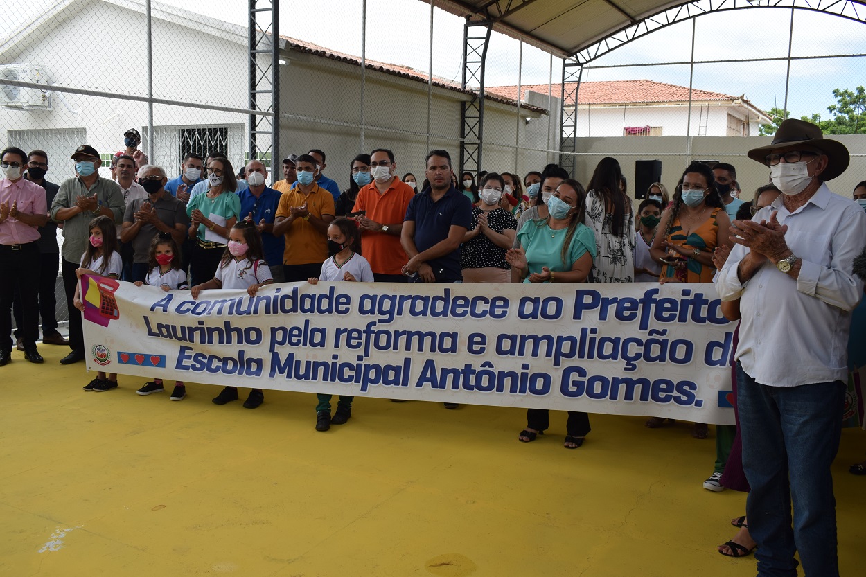 Em seguida, foi a vez da inauguração da reforma, ampliação e climatização da Escola Municipal Antônio Gomes, obra no valor de R$ 249.537,58.