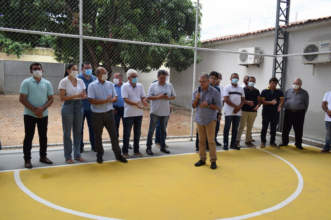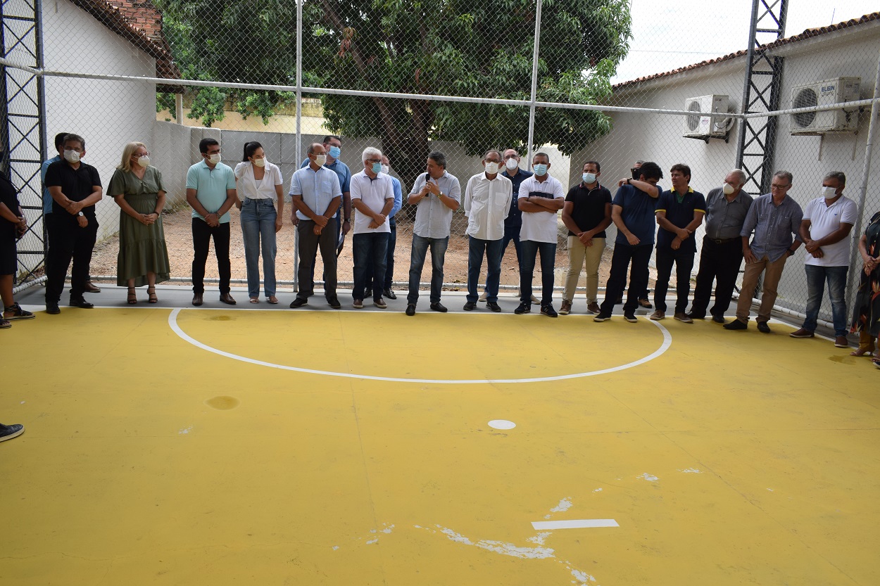 No Centro de Atenção Integral à Criança (CAIC) o prefeito Laurinho Maia – acompanhado da primeira-dama Geska Oliveira, dos deputados Efraim Filho (federal) e Galego Souza (estadual), do secretário estadual Murilo Galdino (Articulação Governamental) e do presidente Adriano Galdino (Assembleia Legislativa da Paraíba) – fez a inauguração da construção, iluminação, paisagismo e instalação de internet gratuita da Quadra de Areia.