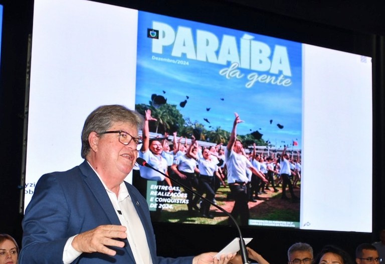 O governador João Azevêdo apresentou, nesta segunda-feira (6), no Teatro Paulo Pontes, no Espaço Cultural José Lins do Rego, em João Pessoa, os resultados das ações e conquistas do governo no ano de 2024, ocasião em que foi lançada a nova edição da revista ‘Paraíba da Gente’,com o balanço das obras e políticas públicas realizadas no período.