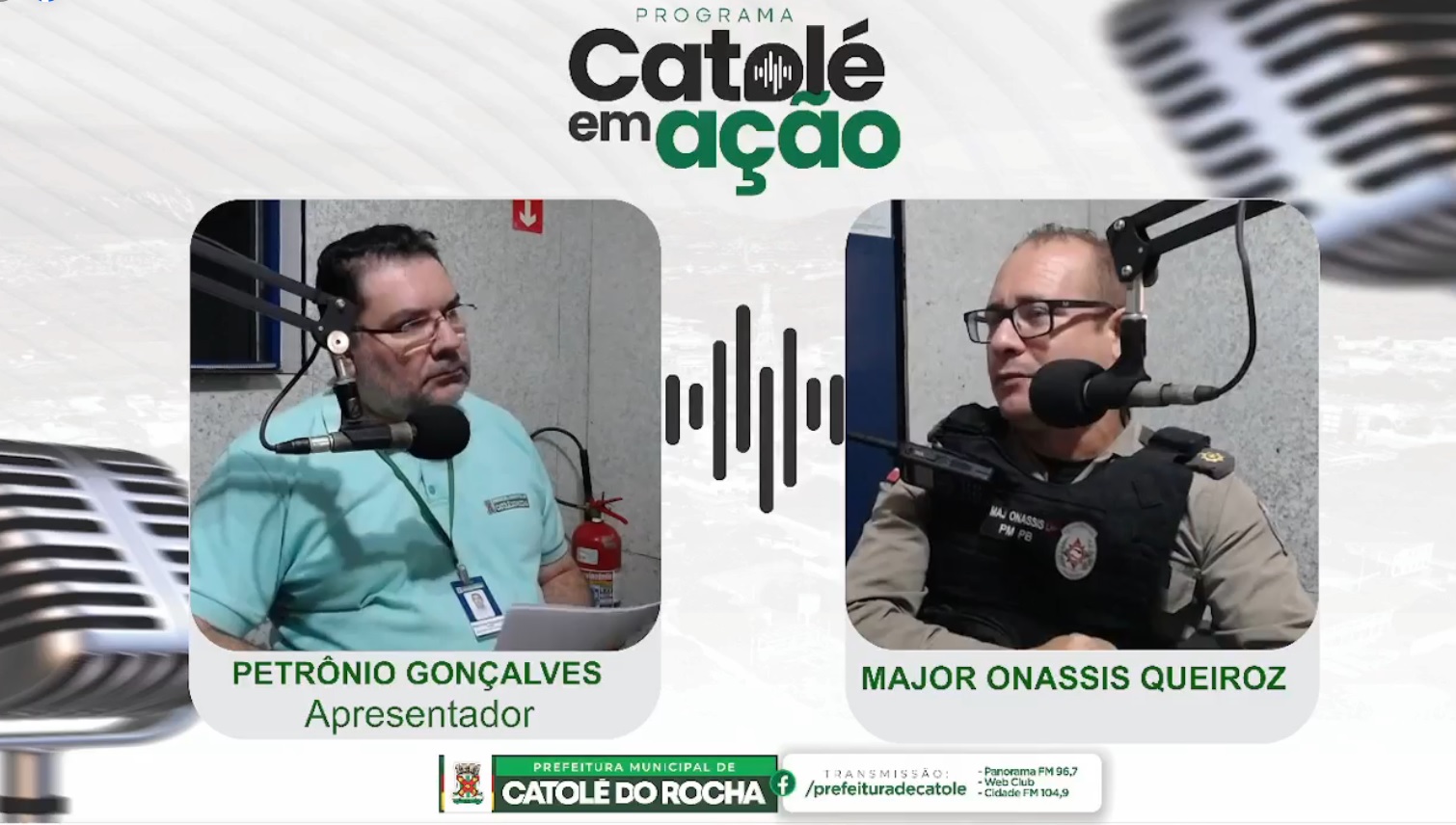 O Programa Institucional “Catolé em Ação” – edição n° 122 – recebeu o comandante Major Onassis Queiroz (12º Batalhão da Polícia Militar) e o Tenente Irineu Neto (2ª Companhia Independente de Bombeiros Militar).