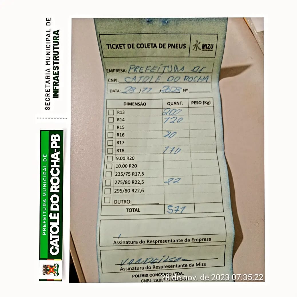 A Mizu Cimentos realizou, terça-feira (28/11), a primeira coleta de pneus inservíveis do ecoponto (container) instalado no município de Catolé do Rocha.