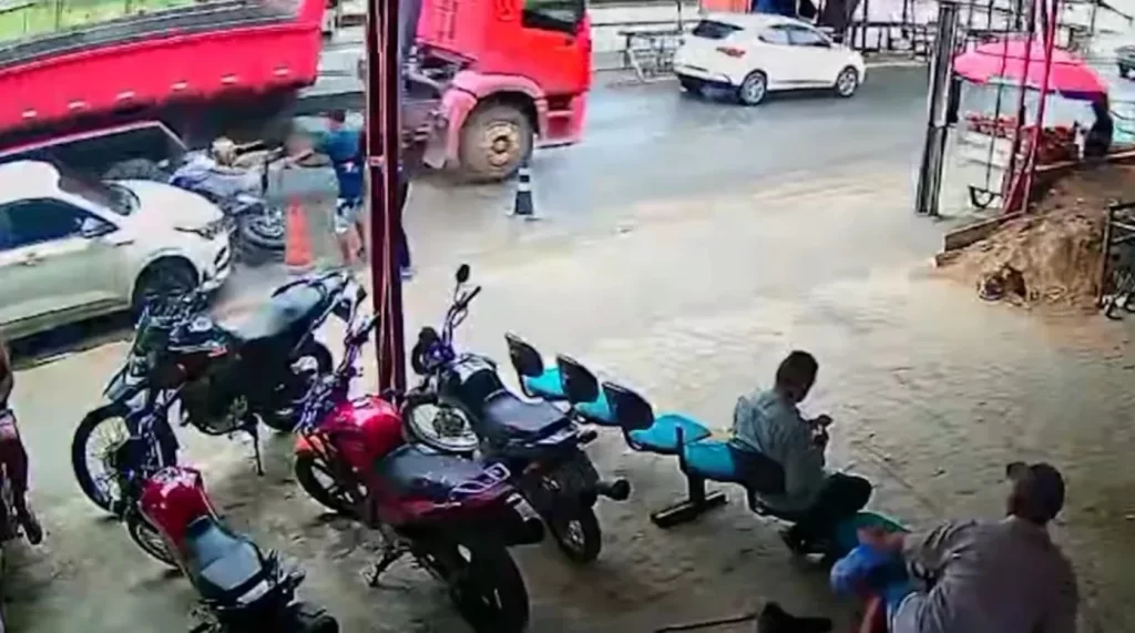 Na manhã de sexta-feira (5), um caminhão-caçamba atropelou um motociclista de 19 anos no bairro Colinas do Sul, em João Pessoa. As imagens mostram a vítima, identificada como Pedro Henrique de Souza, trafegando ao lado do caminhão, caindo e sendo atropelado. Nas imagens, o motorista segue sem parar e sem prestar socorro, enquanto moradores se aproximam para tentar ajudar a vítima.