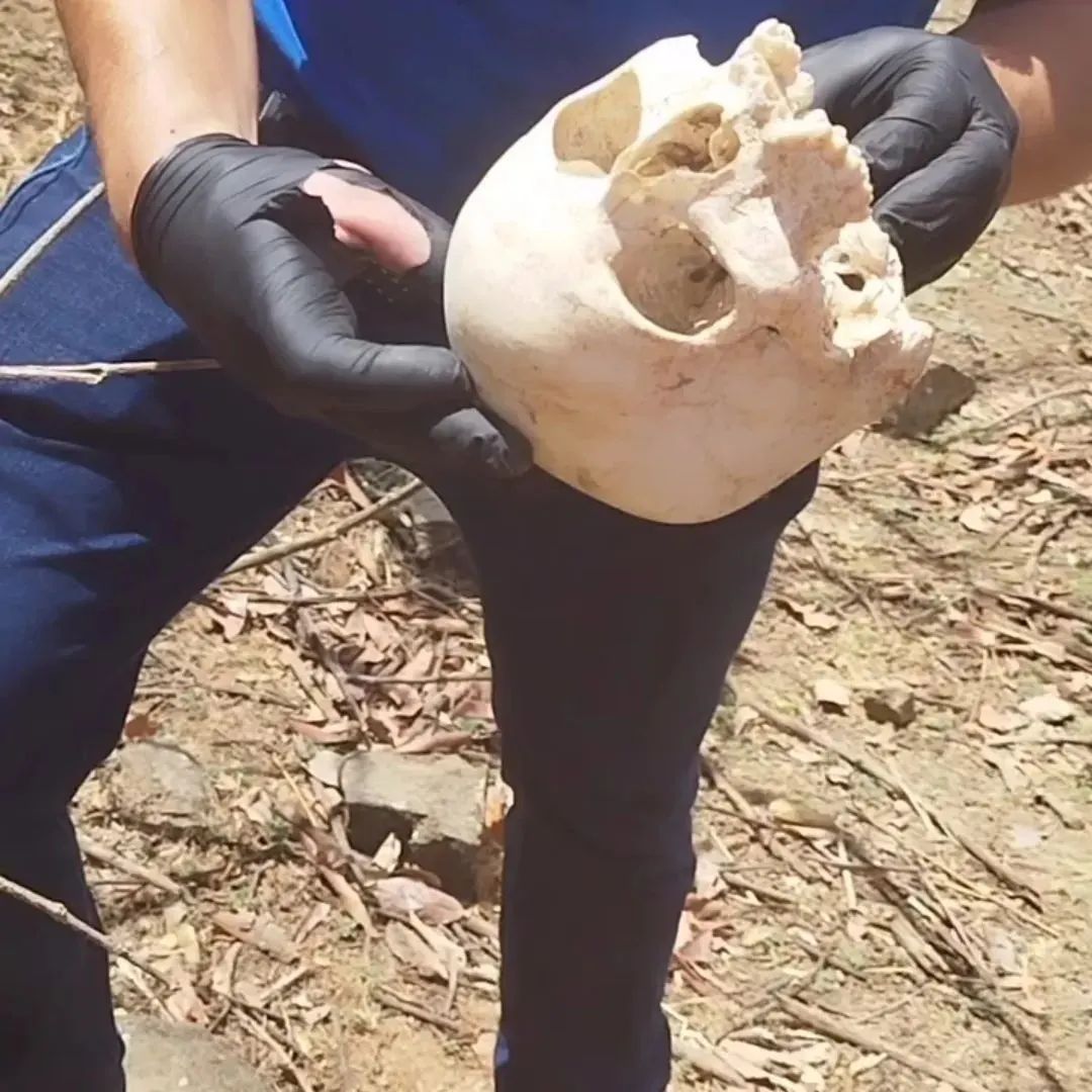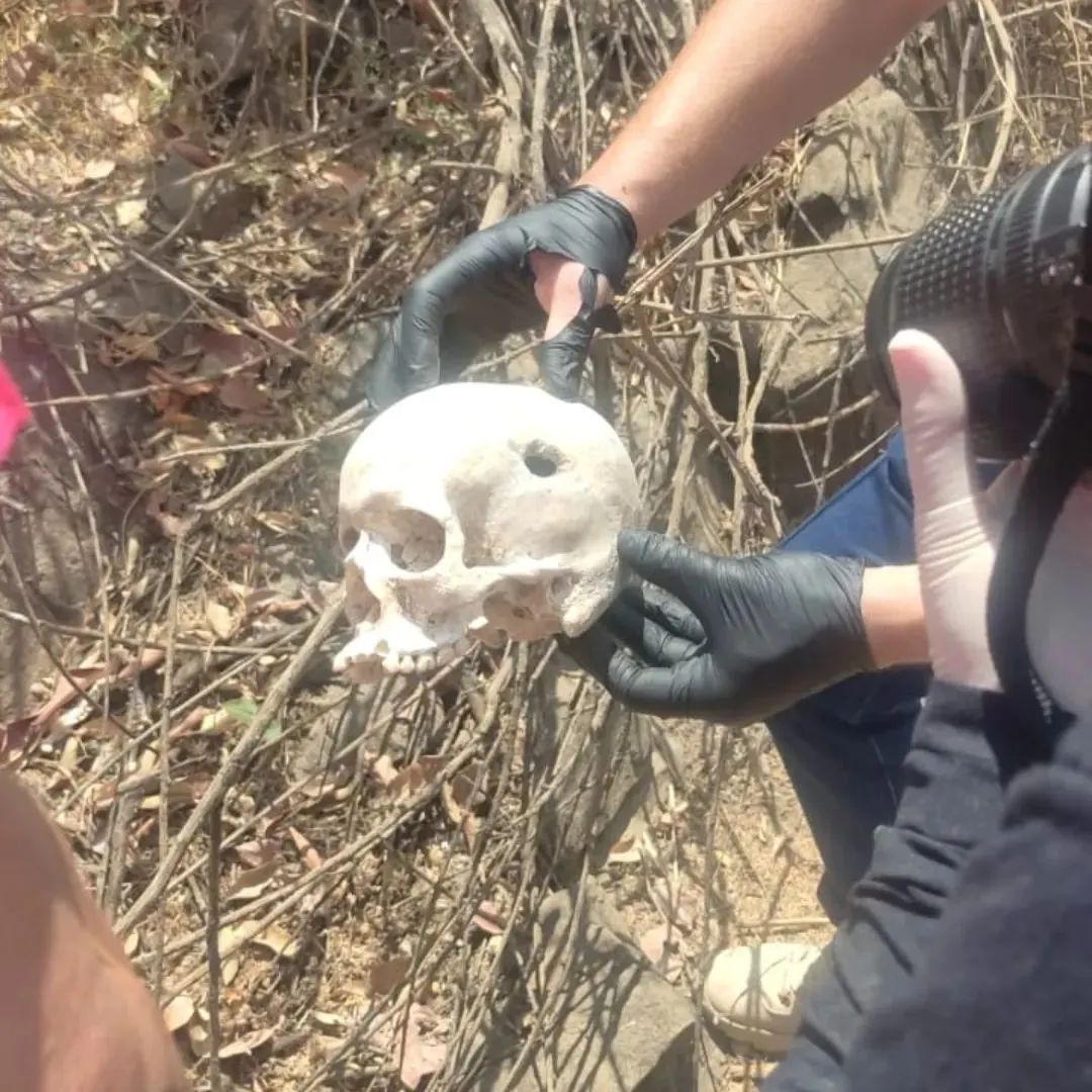 De início, foi constatado que o crânio apresenta uma perfuração, provavelmente de bala. Além da ossada, havia uma bolsa com roupas e um par de chinelos. A perícia recolheu o material para realizar os exames que confirmarão a identidade da vítima.