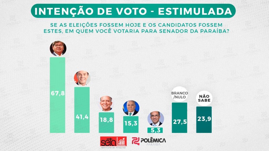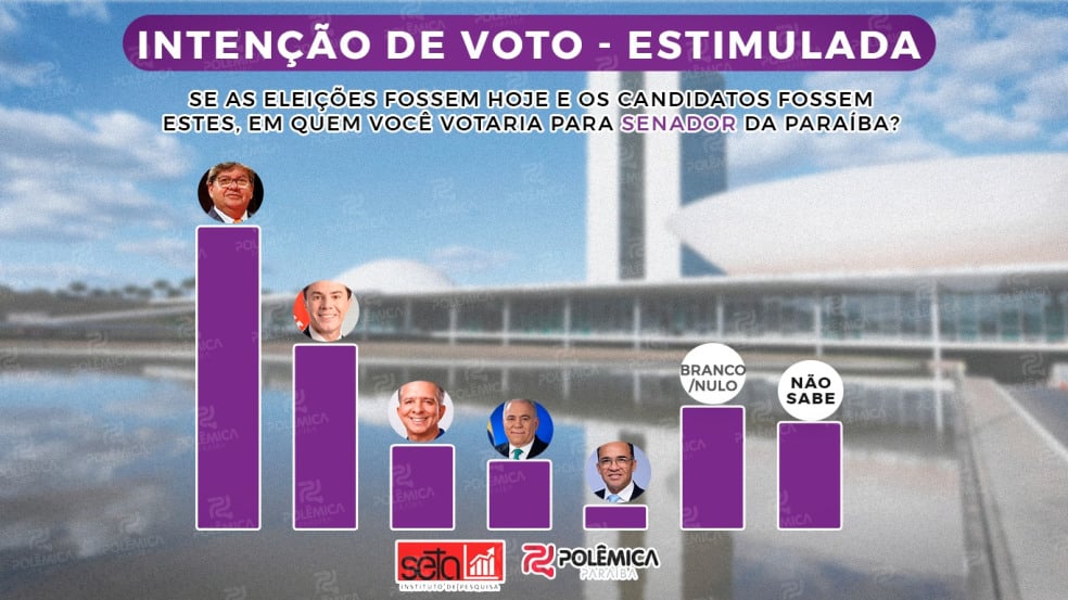 Parceria entre Polêmica Paraíba e Instituto Seta continua fornecendo dados para a população avaliar o cenário político de 2026. Nesta terça-feira (09), foi divulgado o quadro para o Senado Federal.