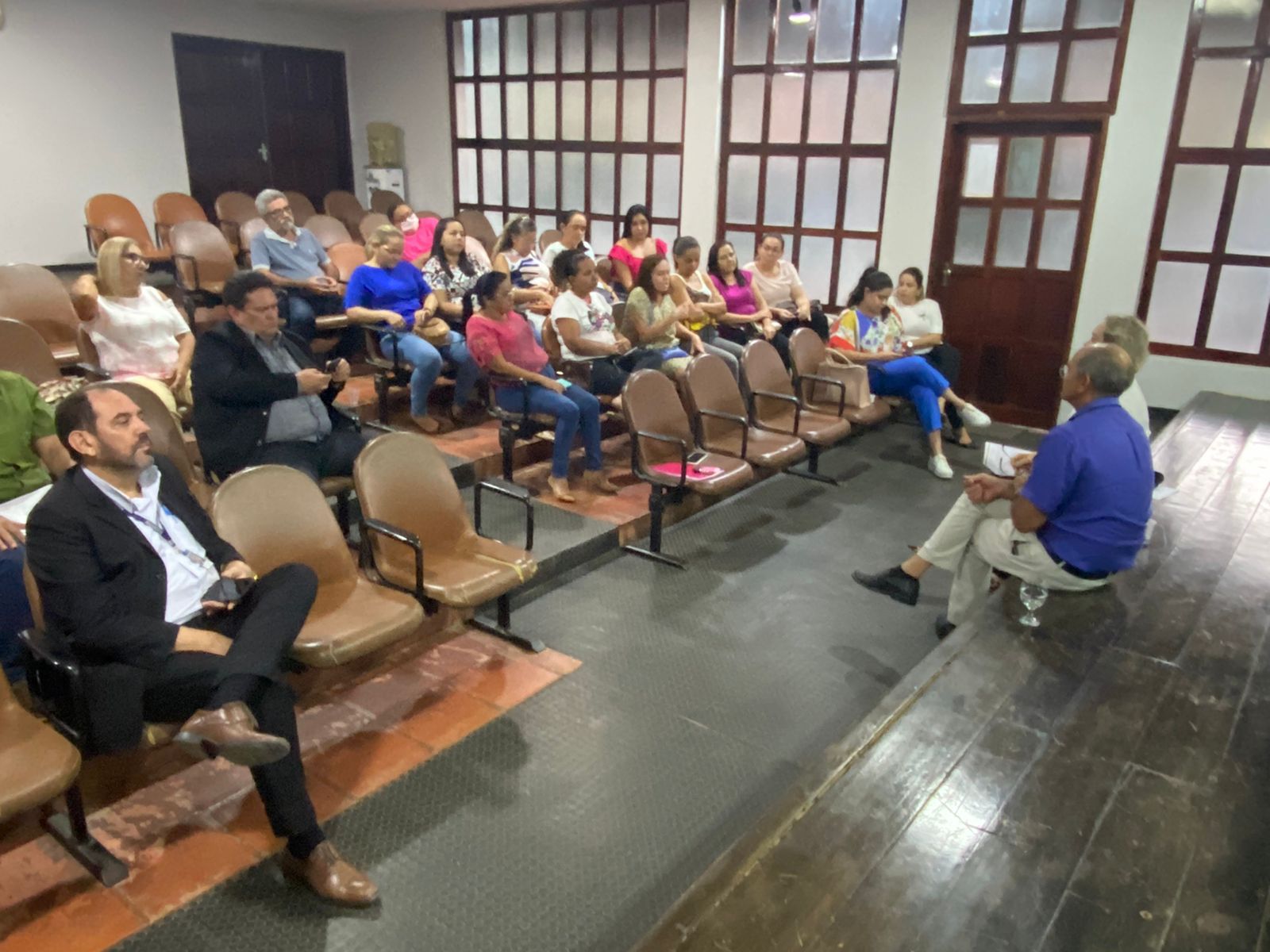 A reunião aconteceu no Teatro Municipal Alício Barreto – Centro Estudantil de Cultura Geraldo Vandré – e serviu para alinhar questões relacionadas ao pagamento do Piso Nacional da Enfermagem, além de outras demandas da categoria.