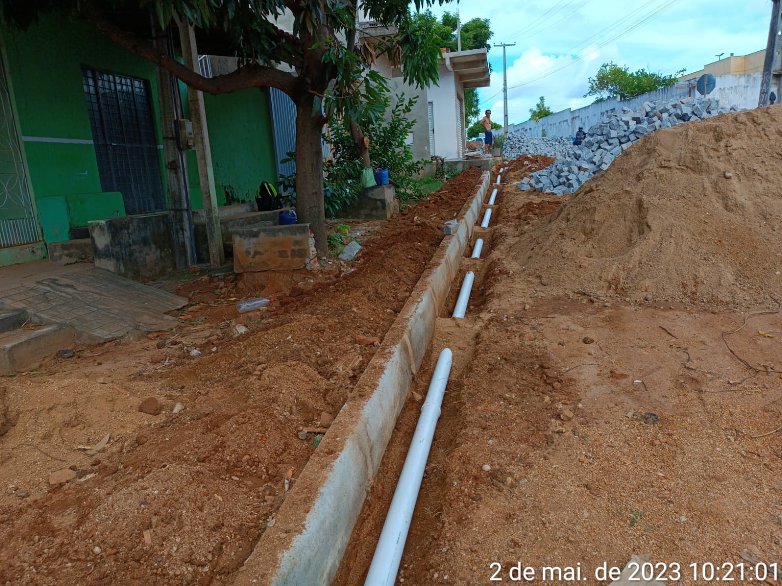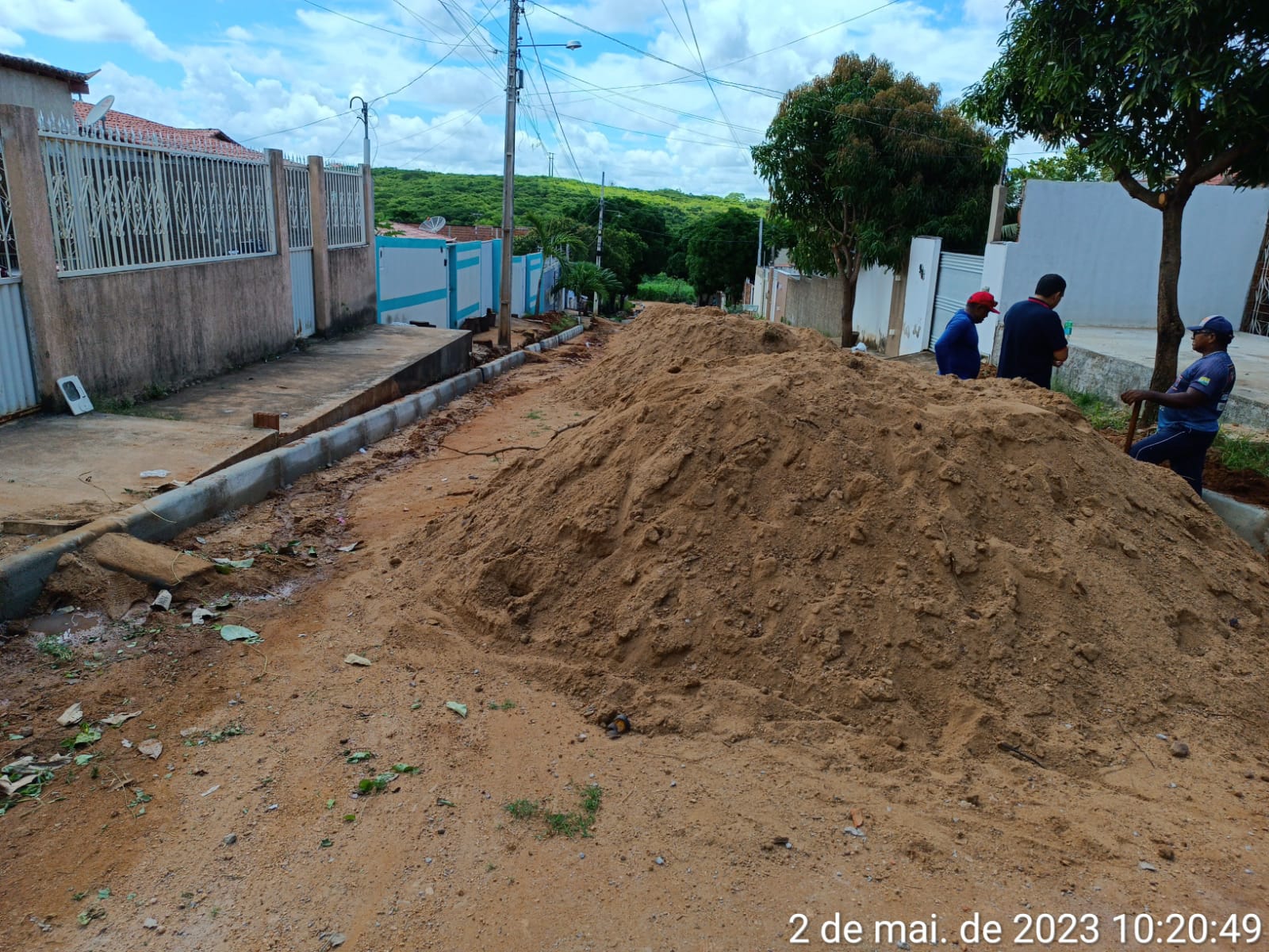 No Bairro João Serafim, a Rua Manoel Paulino Dutra foi rebaixada, teve a reposição da Rede de Esgotos e agora está sendo pavimentada, com recursos próprios do tesouro municipal.