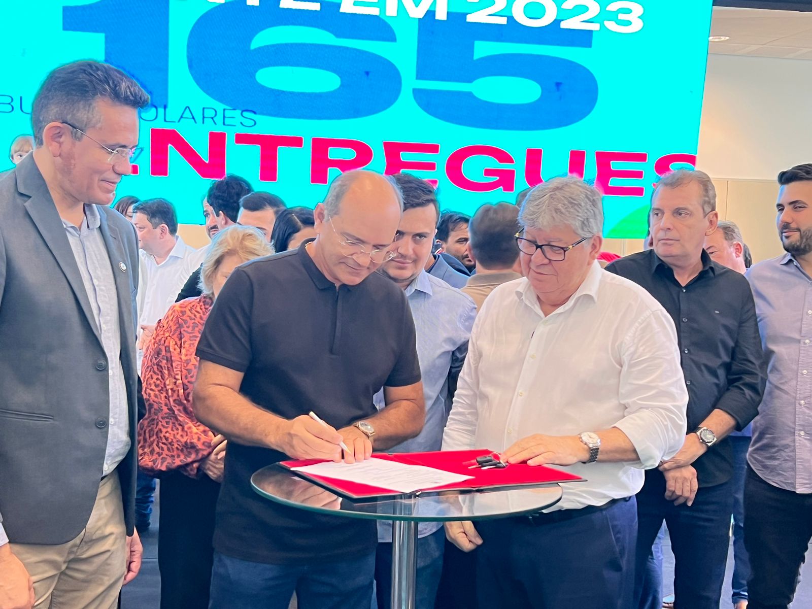 A solenidade de entrega de 60 onibus escolares – Governo da Paraíba – ocorreu no Centro de Convenções de João Pessoa (PB) e contou com a participação do governador João Azevedo, secretário estadual Roberto Souza (Educação), auxiliares da gestão estadual e prefeitos de 60 municípios.