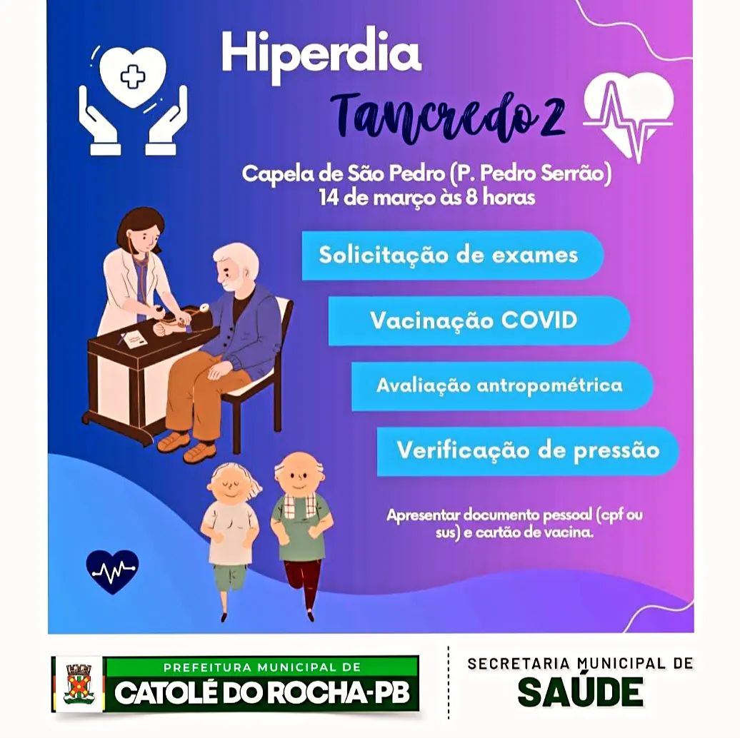 A Secretaria Municipal de Saúde – Prefeitura de Catolé do Rocha – vai realizar, quinta-feira (14/03), mais uma edição do Hiperdia.