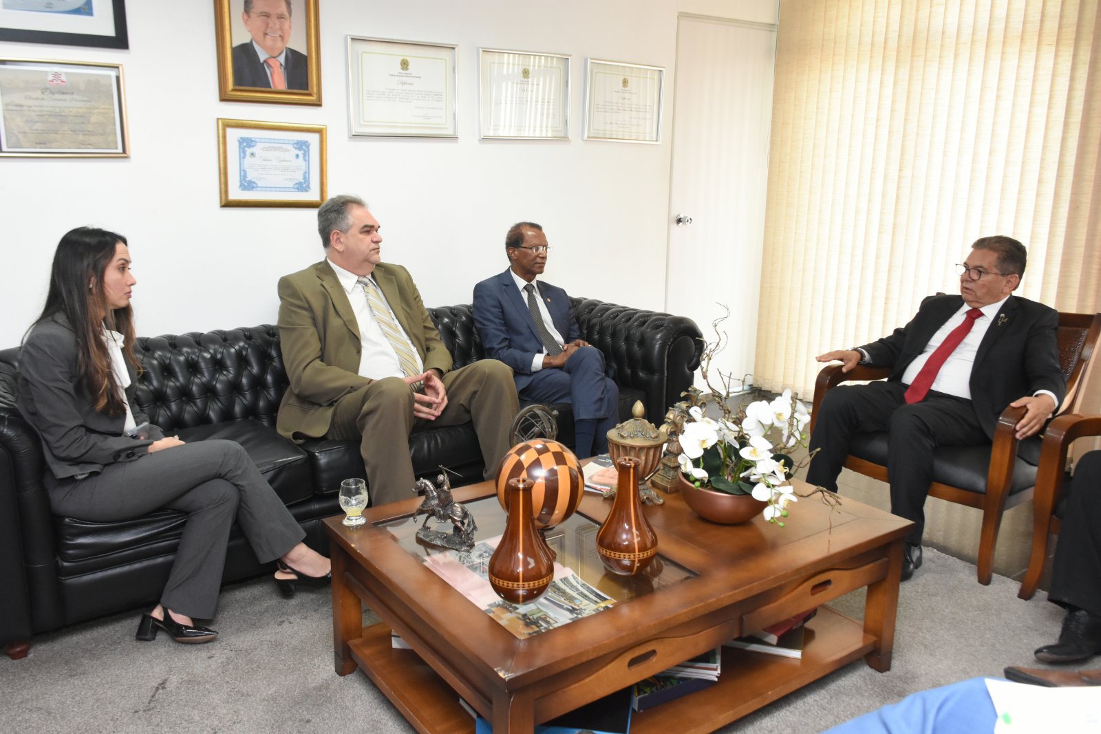 O presidente do Tribunal de Justiça da Paraíba, desembargador João Benedito da Silva, realizou uma visita na manhã desta quinta-feira (14) ao presidente da Assembleia Legislativa do Estado, deputado Adriano Galdino. Ele estava acompanhado do desembargador Frederico Coutinho e da juíza auxiliar da Presidência, Lua Yamaoka.