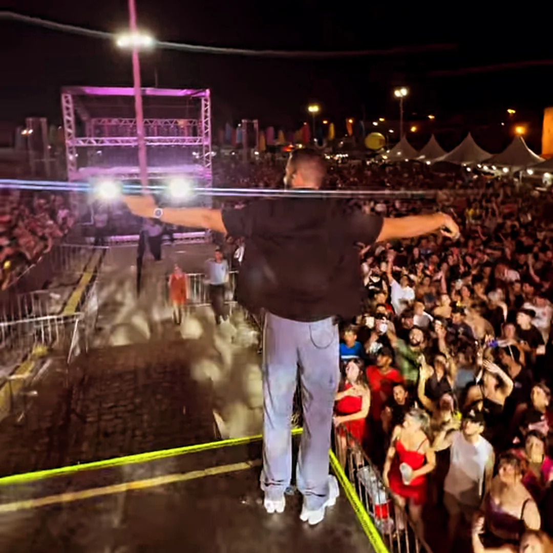 Na sequência, foi a vez do jovem cantor Hiago Medeiros, considerado uma das grandes promessas do forró. O artista vem ganhando destaque por sua voz carismática e estilo próprio, que mistura o forró com influências do brega, conquistando cada vez mais espaço entre o público.