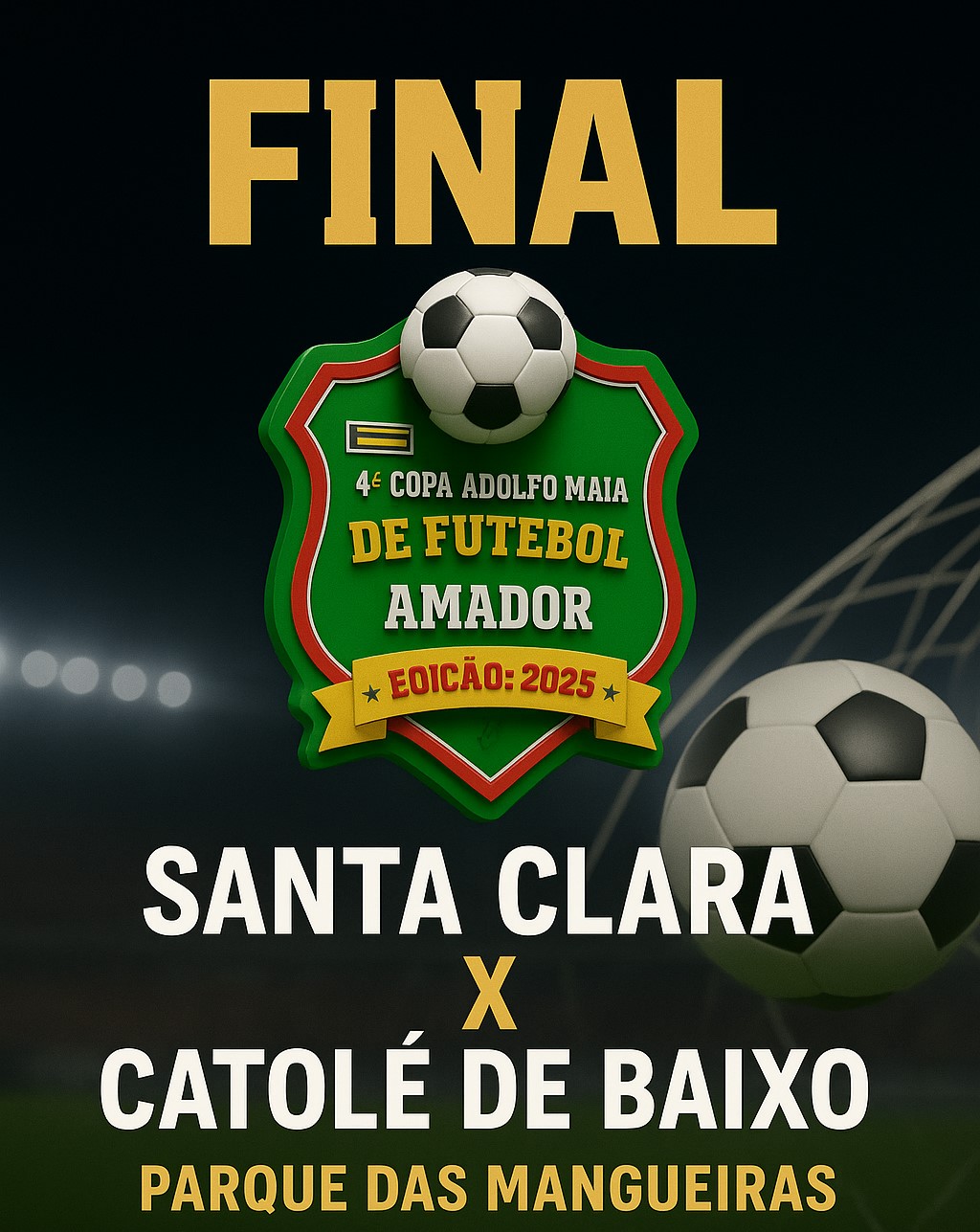 A Prefeitura de Catolé do Rocha e a Secretaia Municipal de Espote e Lazer reforça o convite à comunidade esportiva para acompanhar a grande final e destaca a relevância da competição para o calendário amador da cidade, consolidando a Copa Adolfo Maia como um dos principais eventos do futebol regional. A expectativa é de grande presença de público, rivalidade e homenagens durante o encerramento.