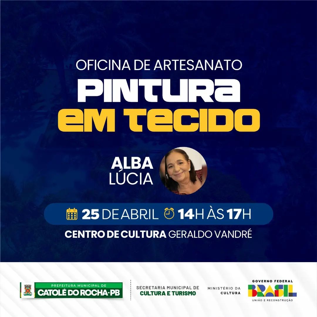 De acordo com o calendário divulgado, na quinta-feira (25/04), a artesã Alba Freitas irá ministrar uma Oficina de Artesanato “Pintura em Tecido”, das 14h00 às 17h00 (tarde).