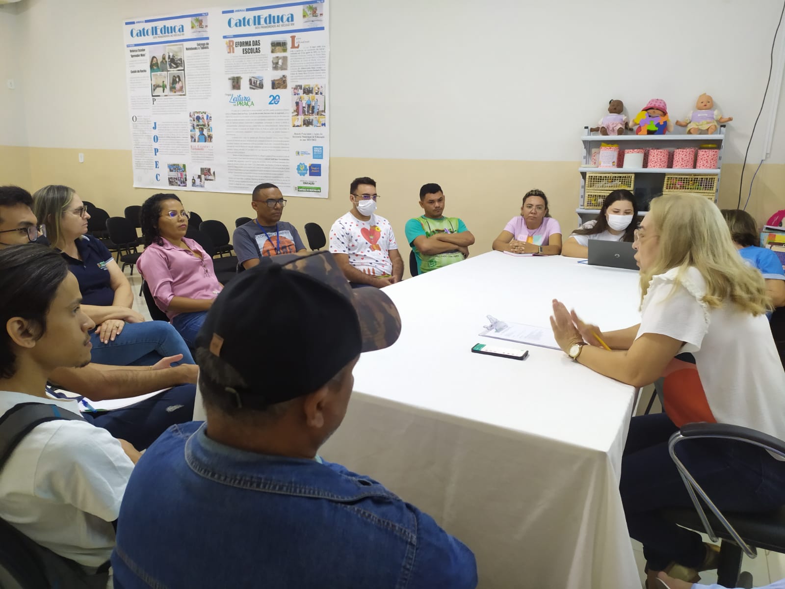 A secretária de educação, Maria Antônia Neta (Profª. Netinha), esteve à frente da reunião e explicou o tema e todo o planejamento que será executado seguindo as orientações do nosso Prefeito Laurinho, aos diretores, representantes das escolas e maestros das bandas presentes no encontro.