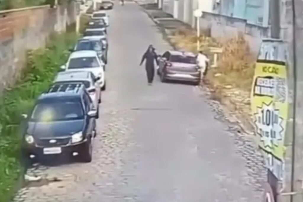 Imagens das câmeras de segurança do condomínio mostraram o adolescente entrando no carro do professor, que foi identificado a partir da placa do veículo.