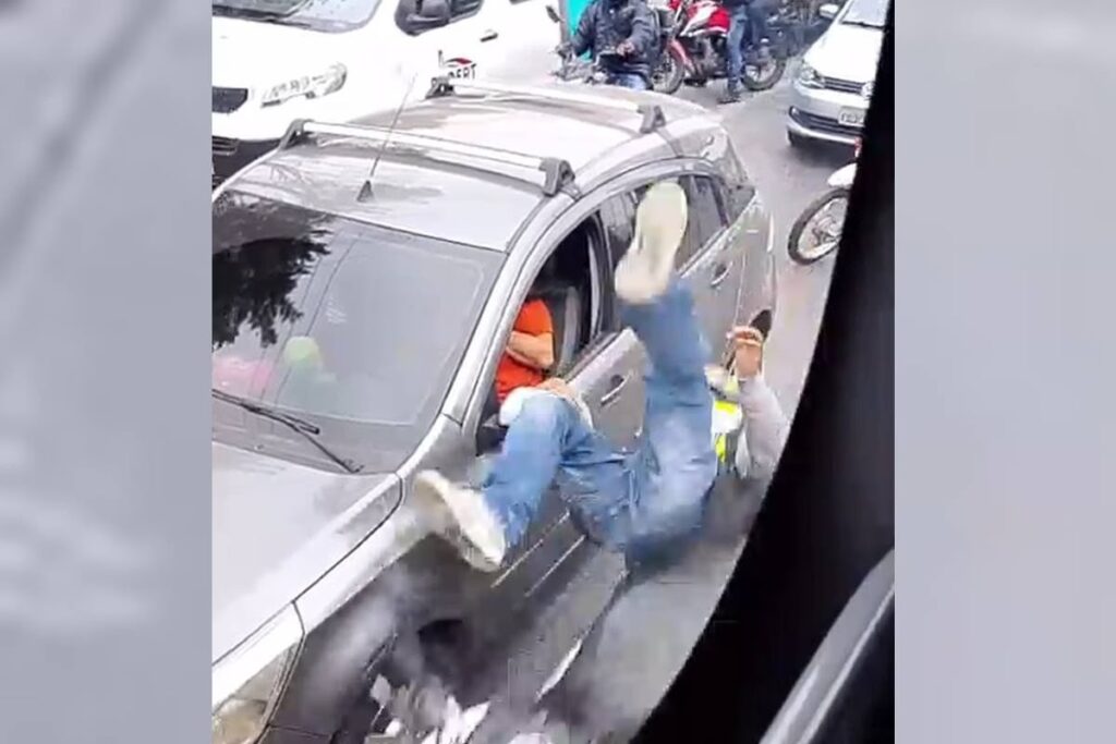 Câmeras de celulares registraram na manhã desta sexta-feira (12/9) a ação de um assaltante e a reação imediata de um policial militar de São Paulo, na Avenida João Dias, zona sul da capital paulista. As imagens, que circularam rapidamente nas redes sociais, mostram o momento em que o suspeito aborda o motorista de um veículo Agile e, em seguida, é surpreendido pelo militar que passava pelo local.