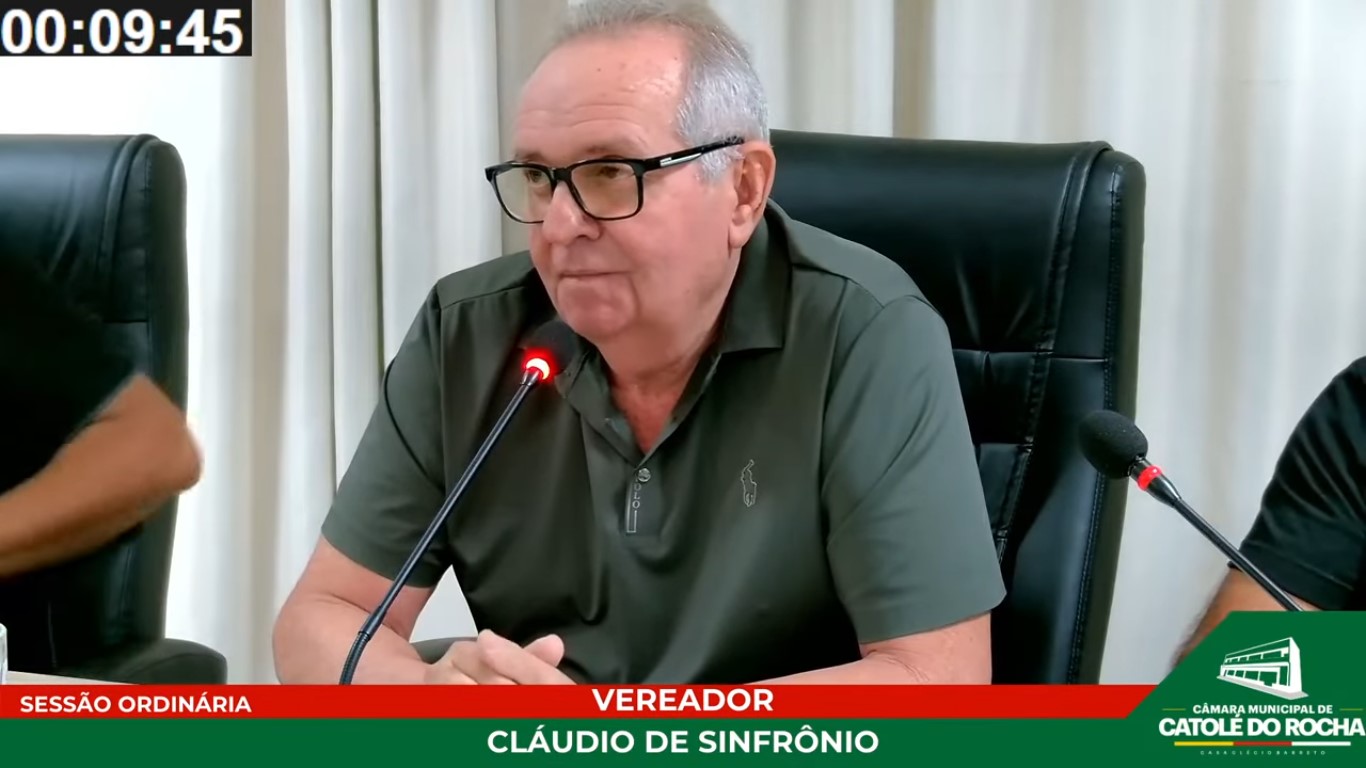 O vereador Cláudio de Sinfrônio durante a Sessão Ordinária desta segunda-feira, dia 23 de fevereiro, veio a público esclarecer informações sobre a construção dos 100 apartamentos que serão erguidos em Catolé do Rocha. Segundo ele, o novo conjunto habitacional — que receberá o nome de Sinfrônio Gonçalves Neto, em homenagem ao ex-prefeito e ex-vereador que marcou a história política do município — é uma conquista sua e da família Sinfrônio, e não do deputado Gervásio Maia.