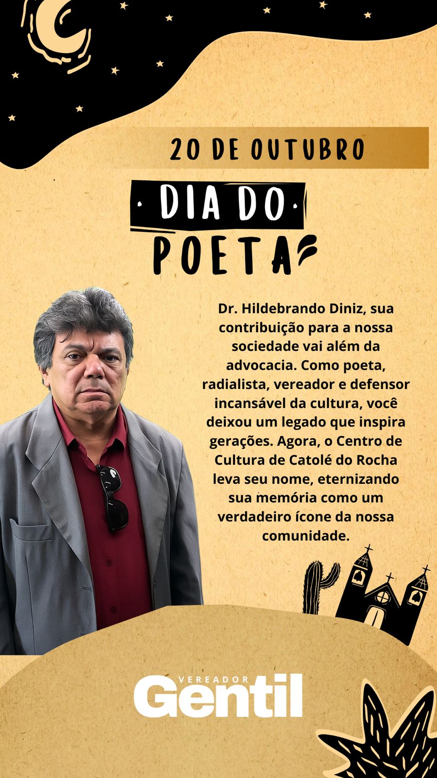 Neste 20 de outubro, Dia do Poeta, o vereador e advogado Dr. Gentil Barreto prestou uma emocionante homenagem ao saudoso Dr. Hildebrando Diniz Araújo, uma das figuras mais marcantes da história política, jurídica e cultural de Catolé do Rocha e de todo o Sertão paraibano.
